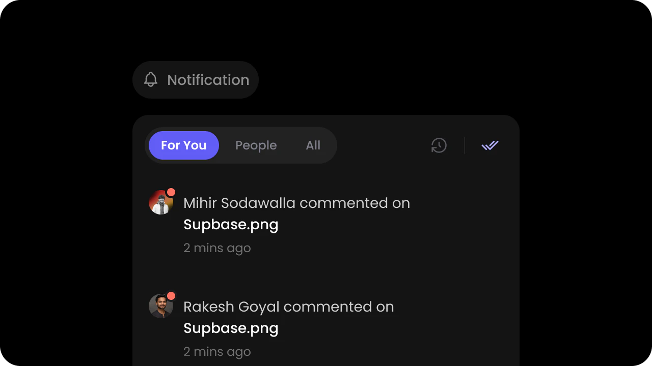 • However, if you want to create a dedicated page or dedicated section for Notifications, you can embed the Velt Notifications Panel component directly there.